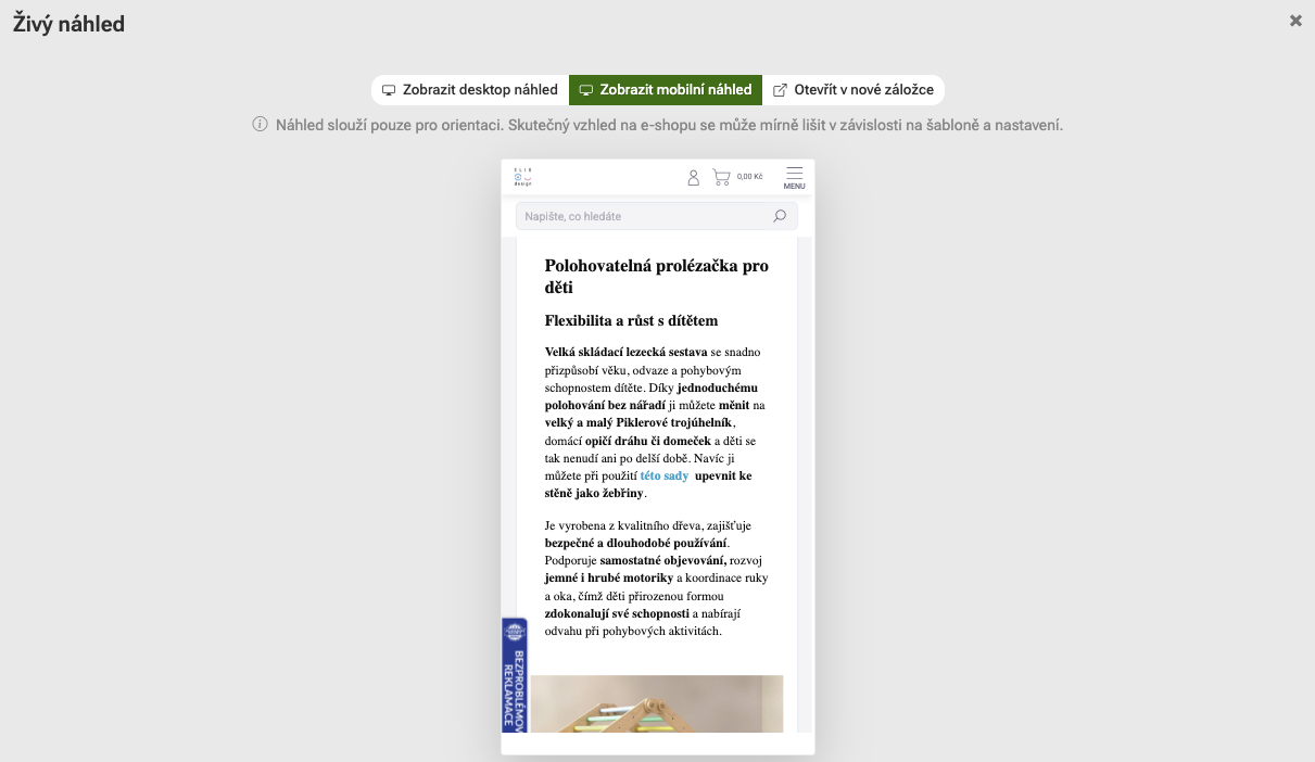 We've brought back the long-requested live preview of labels on desktop and mobile to Pobo Page Builder. On the product tab or in the overview, just click on the"Live Preview" button, then a modal window will open in which you can switch between PC and mobile preview.